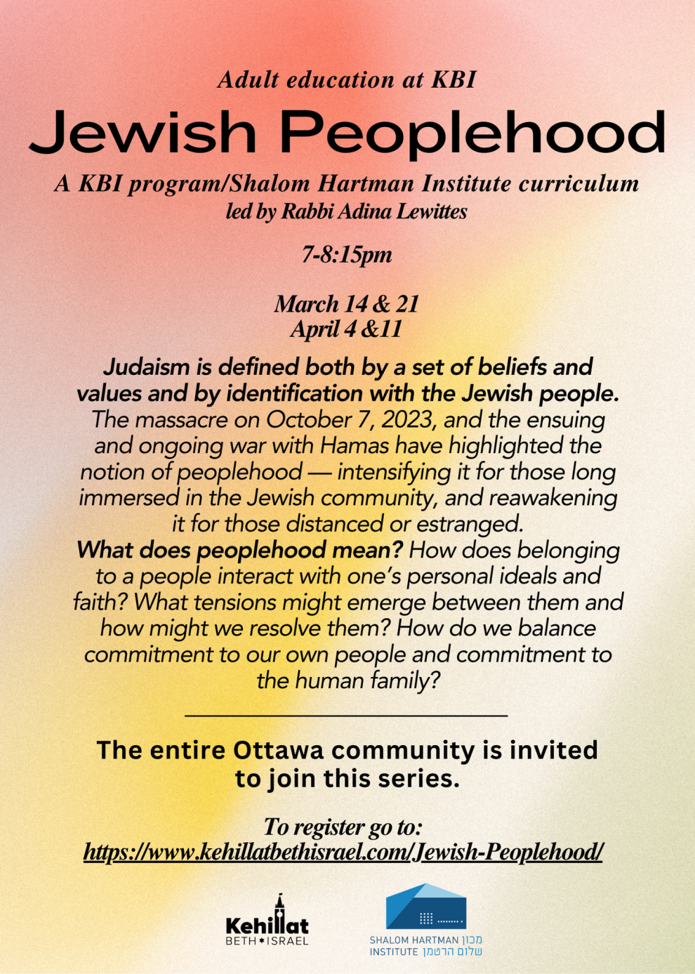 Sponsor: Kehillat Beth Israel Shalom Hartman Institute
