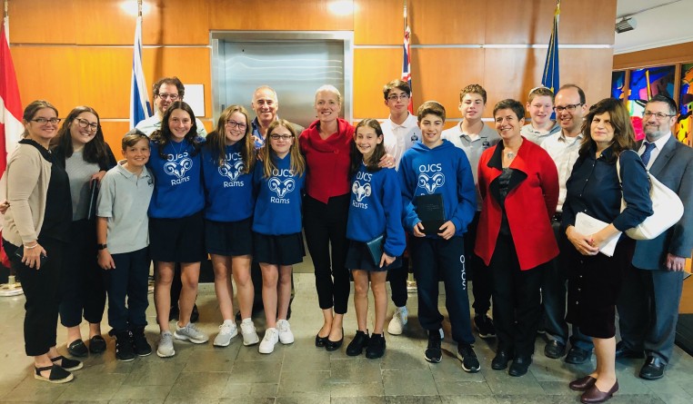 Candidate Catherine McKenna (Ottawa Centre) with Jewish community representatives and Ottawa Jewish Community School students following the Liberal Party roundtable discussion with the Jewish Federation of Ottawa, September 25.